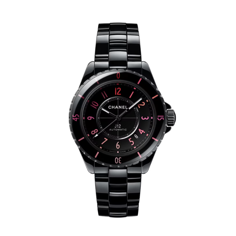 This latest interpretation arrives in highly resistant black ceramic, its bezel and indicators accented with luminous pinks and reds drawn from CHANEL’s legendary makeup palettes. A transparent caseback reveals the Caliber 12.1 self-winding movement, a mechanical heartbeat that reflects the same meticulous craftsmanship behind every CHANEL creation. Also available in a 33 mm version with the Caliber 12.2 movement, each J12 remains a limited edition—making it not only a watch, but a collectible statement of style.